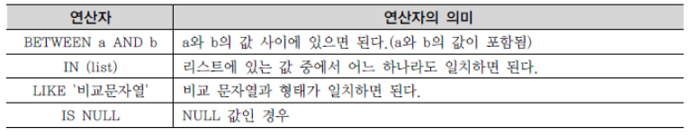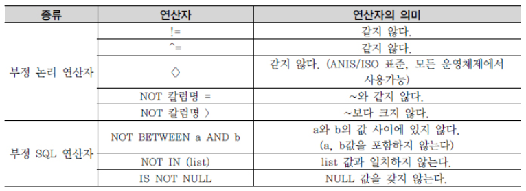 * 비교 연산자, SQL 연산자들로 이루어진 여러 조건들을 논리적으로 연결시키기 위해 사용하는 연산자.