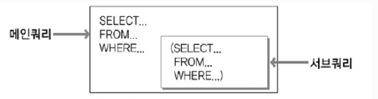 * 하나의 SQL 문 안에 포함되어 있는 또 다른 SQL문을 말한다.