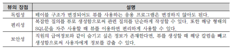 * 테이블은 데이터를 실제로 가지고 있지만, 뷰는 실제로 데이터를 가지고 있지 않다.